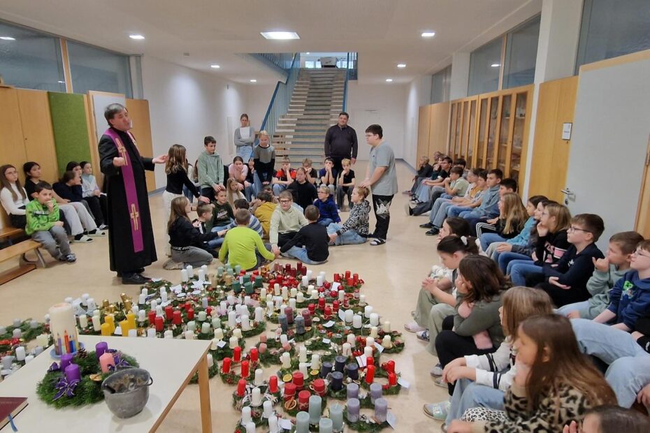 Als Abschluss des gemeinsamen Adventkranzbindens fand auch heuer wieder die Segnung der Adventkränze statt. Unser Religionslehrer, Mag. Franz Vala, gestaltete eine schöne Feier mit uns und ließ uns gemeinsam einen Moment innehalten um uns wieder auf den wahren Gedanken der Adventzeit, des Wartens und der Vorfreude auf Weihnachten, zu besinnen.